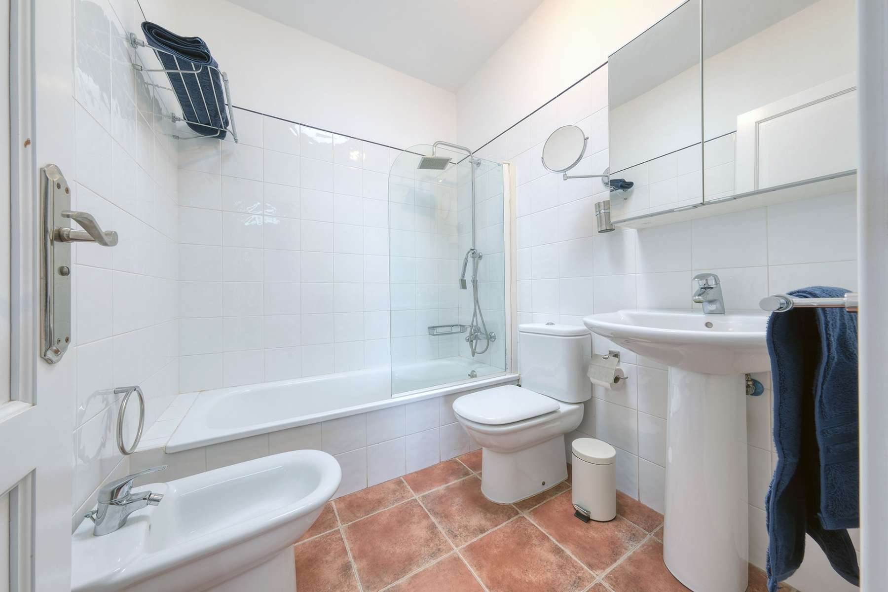 There are three bathrooms, two of which feature a bathtub (no shower).
