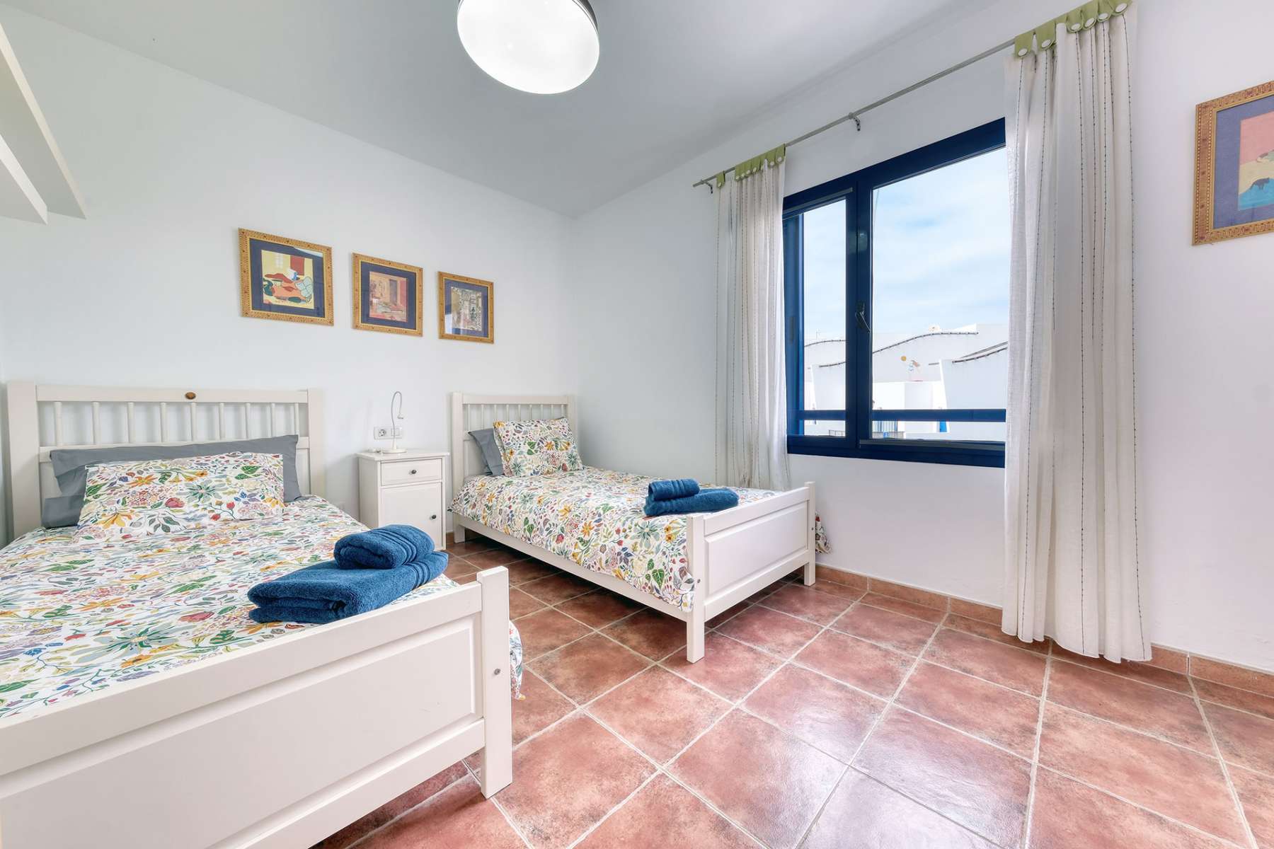 Three bedrooms: one double bedroom, one twin bedroom, and one single bedroom.